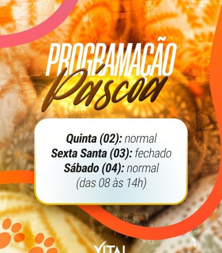 Estaremos fechados apenas na sexta-feira Santa, Feliz Páscoa!